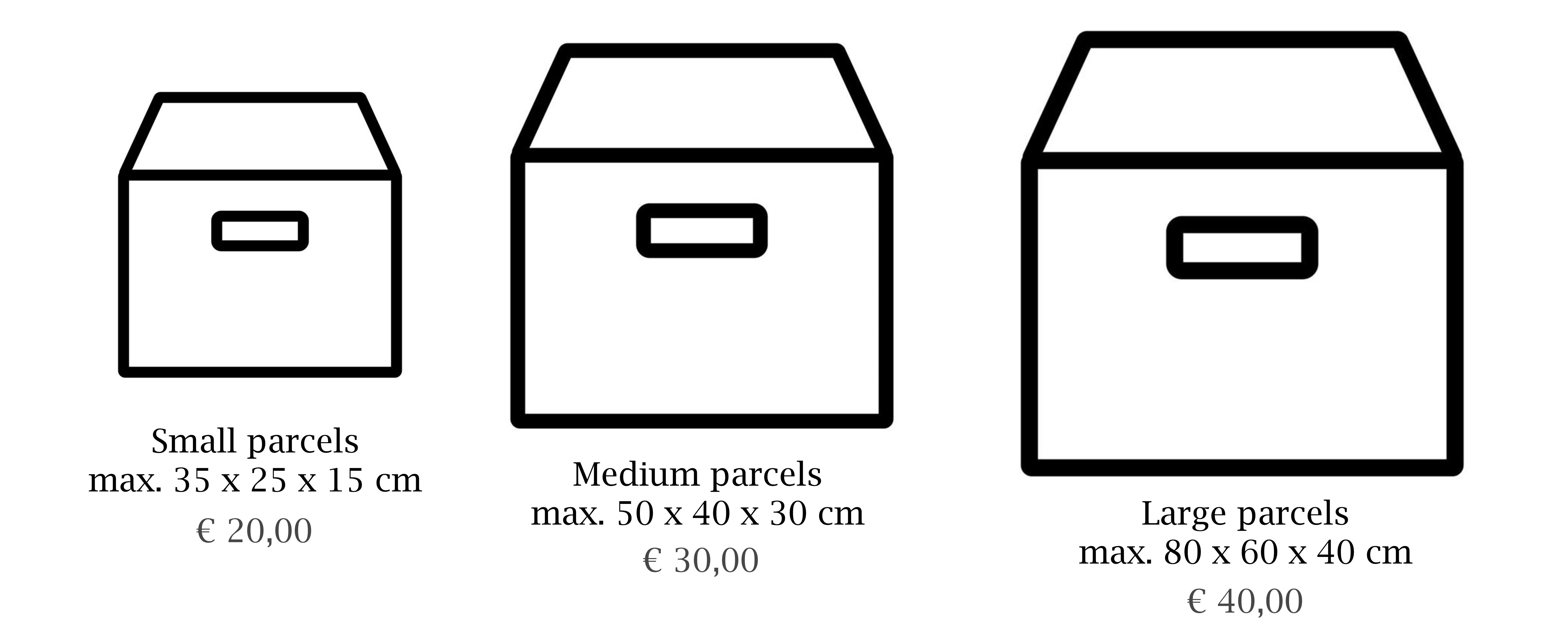 Of course, it is also possible to have a courier/parcel service of your choice pick up your purchases. In that case, we will carefully pack your purchases. The costs for making your package can be found below. We would like to hear the date and time of the arrival of your courier by e-mail.
