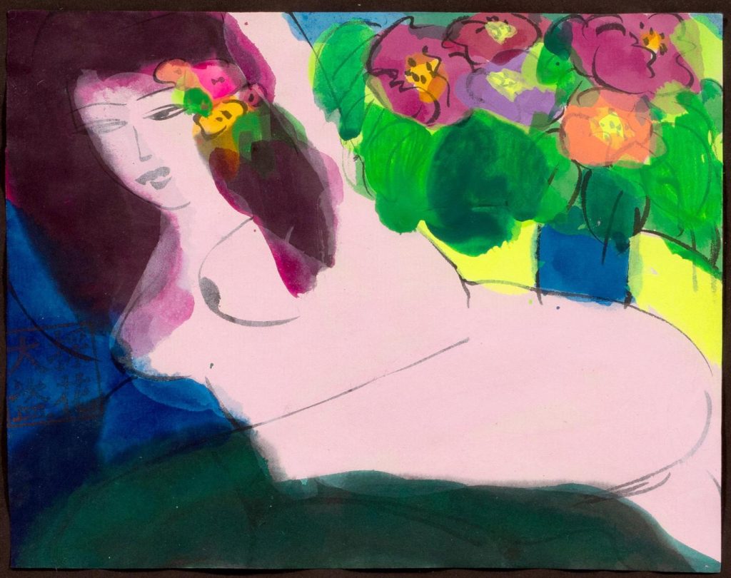 Walasse Ting (1929–2010) was een Chinees-Amerikaanse kunstenaar en dichter, beroemd om zijn explosief kleurrijke schilderijen van vrouwen, bloemen, dieren en exotische scènes. Zijn werk vormt een unieke brug tussen oosterse gevoeligheid en westerse avant-garde en hij wordt vaak geassocieerd met popart, expressionisme en abstracte kunst. De drie kleine aquarellen zijn kenmerkend voor zijn stijl (lotnummers 6879, 6882 en 6883).
