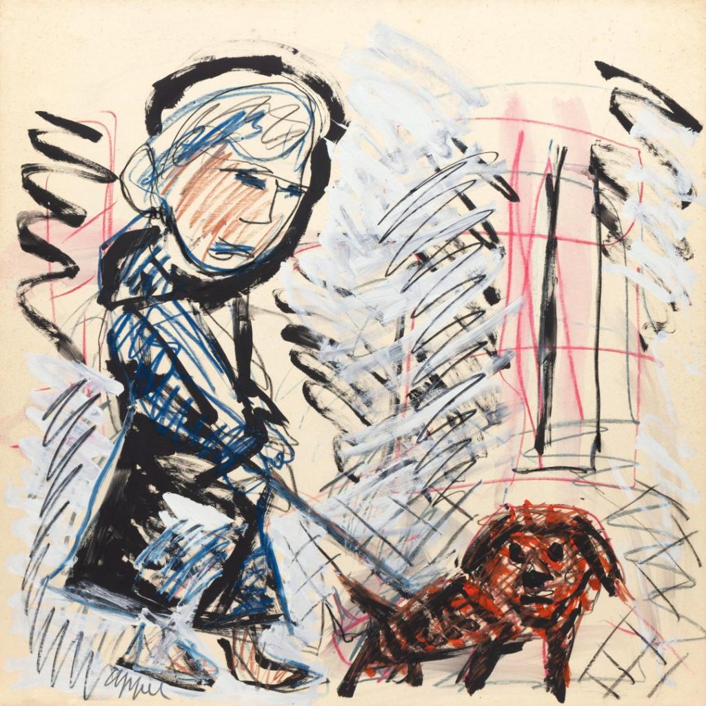 Het werk ‘Woman with dog’  van Karel Appel komt uit 1982. In deze periode was Appel al een lang een gevestigde naam in de internationale kunstwereld, maar hij bleef zich ontwikkelen — ook al bleef zijn stijl herkenbaar expressief en krachtig. Deze periode laat een iets andere, rijpere kant van hem zien, waarin hij meer ruimte liet voor verfijning zonder zijn wilde energie te verliezen. Dit werk is daar een goed voorbeeld van (lotnummer 6803).