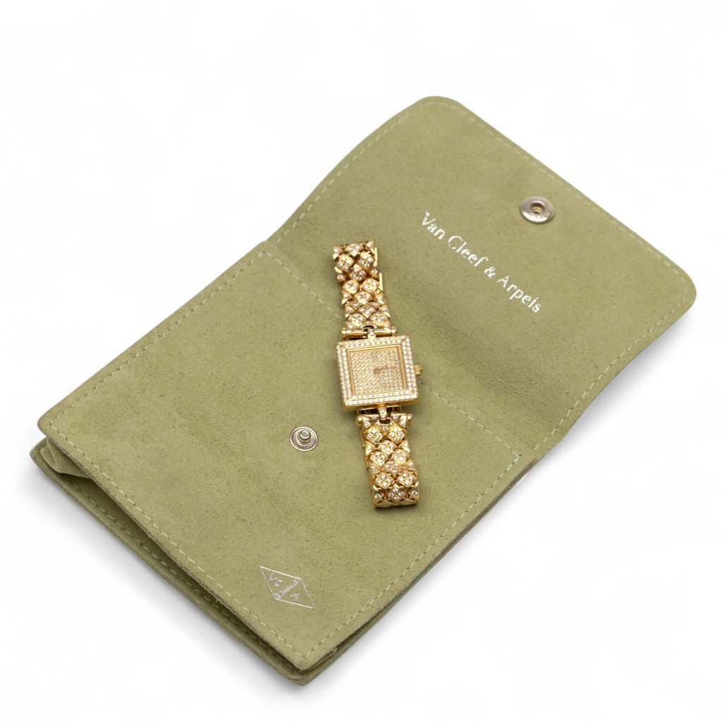 - Lotnummer 629: Van Cleef & Arpels, 18 kt. gouden polshorloge. Model Classique, pavé bezet met diamant
