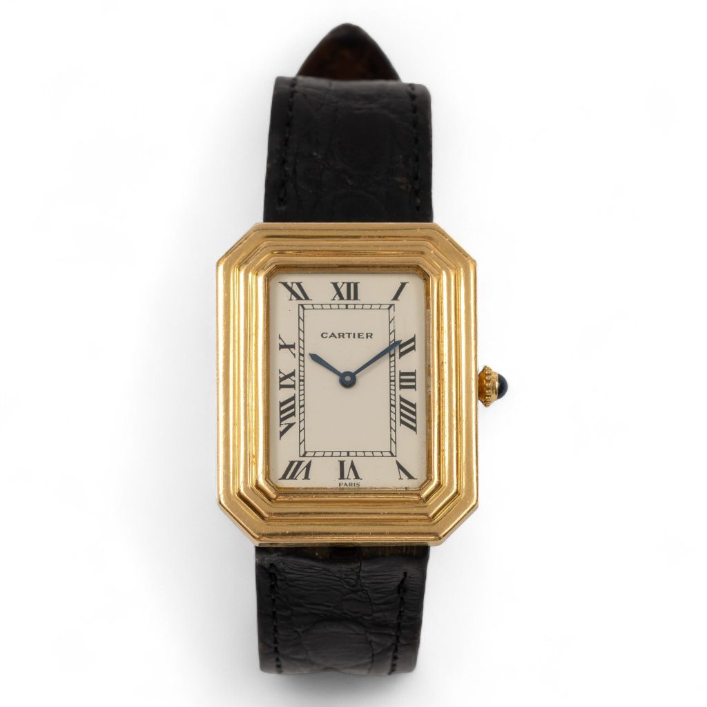 - Lotnummer 630: Cartier, 18 kt. gouden polshorloge, jaren ’70. Model Cristallor Fabergé Jumbo Ref. 78096, gesigneerd Cartier en Paris