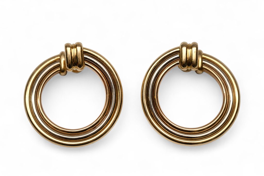 - Lotnummer 251: Cartier, 18 kt. gouden oorstekers, jaren ’80. Model Trinity. Meesterteken Gay Frères