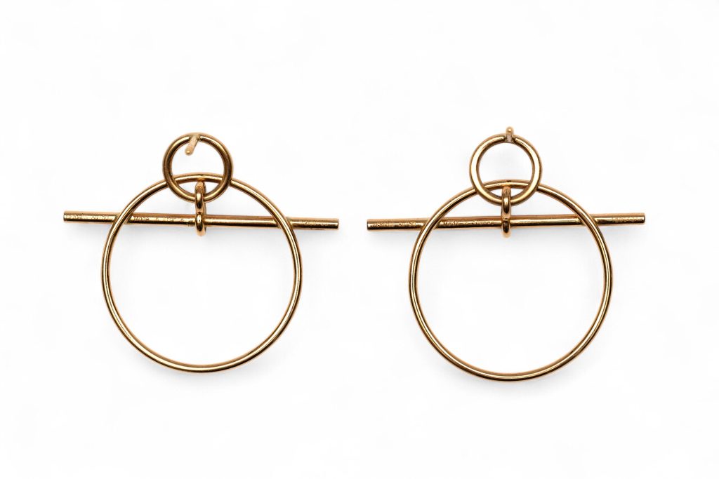 - Lotnummer 252: Hermès, gouden oorstekers. ‘Loop earrings’. In de vorm van een kapittelslot