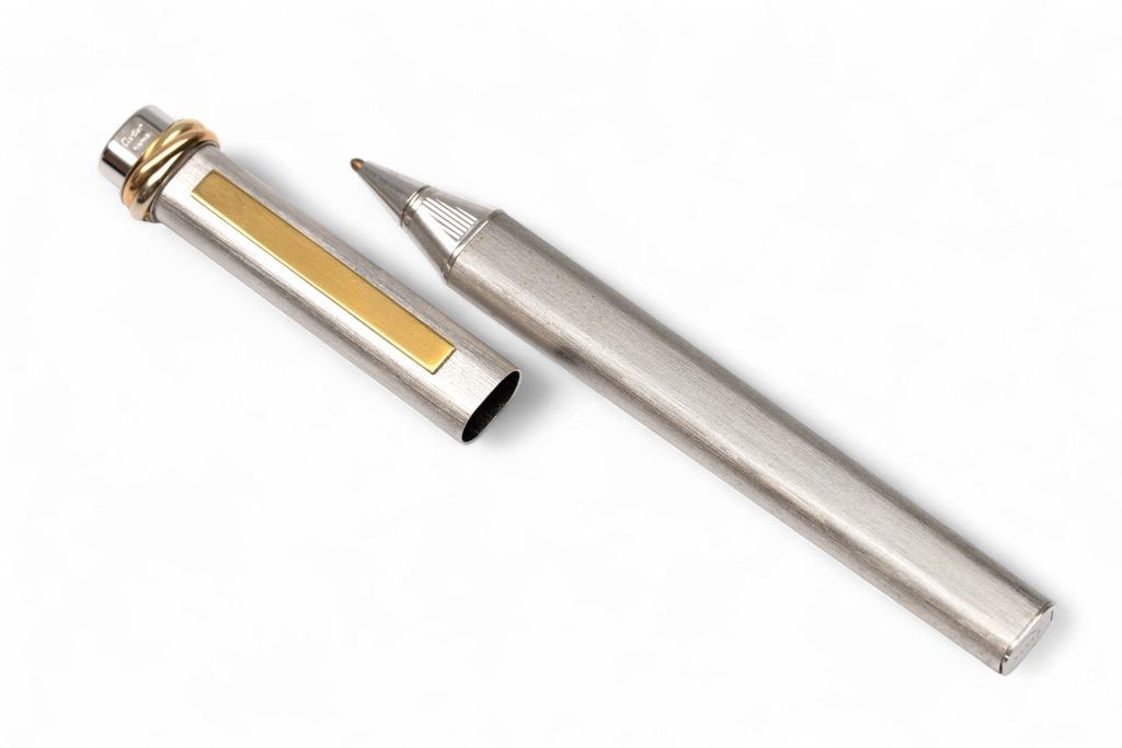 - Lotnummer 627: Cartier, stalen polshorloge en ball point. Horloge model Santos Ronde, 8191, ball point les must De Cartier, Vendôme Trinity