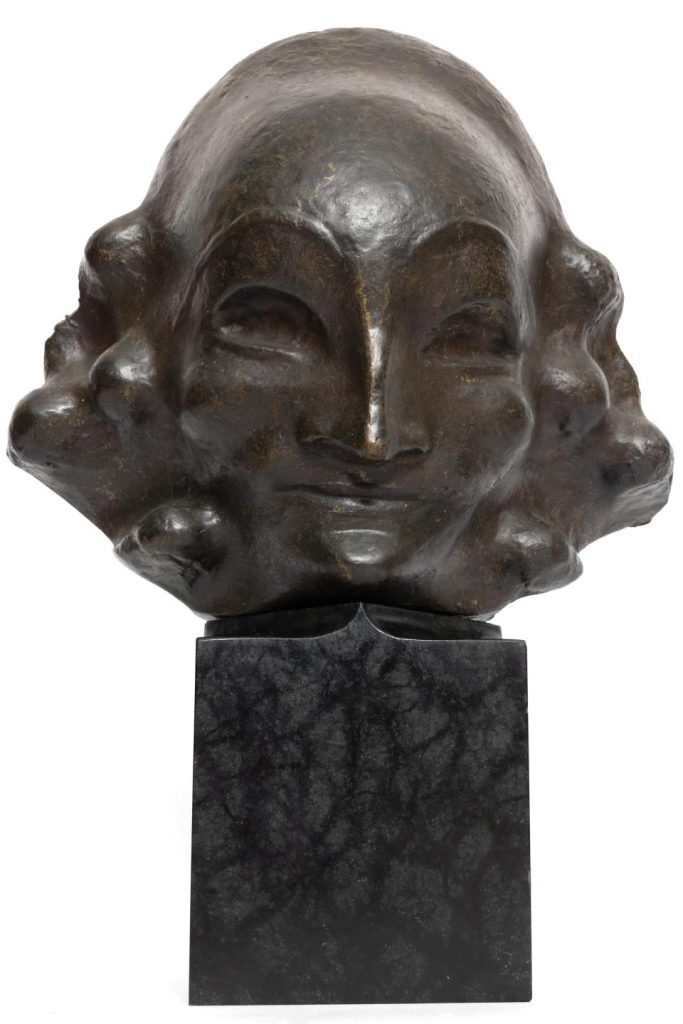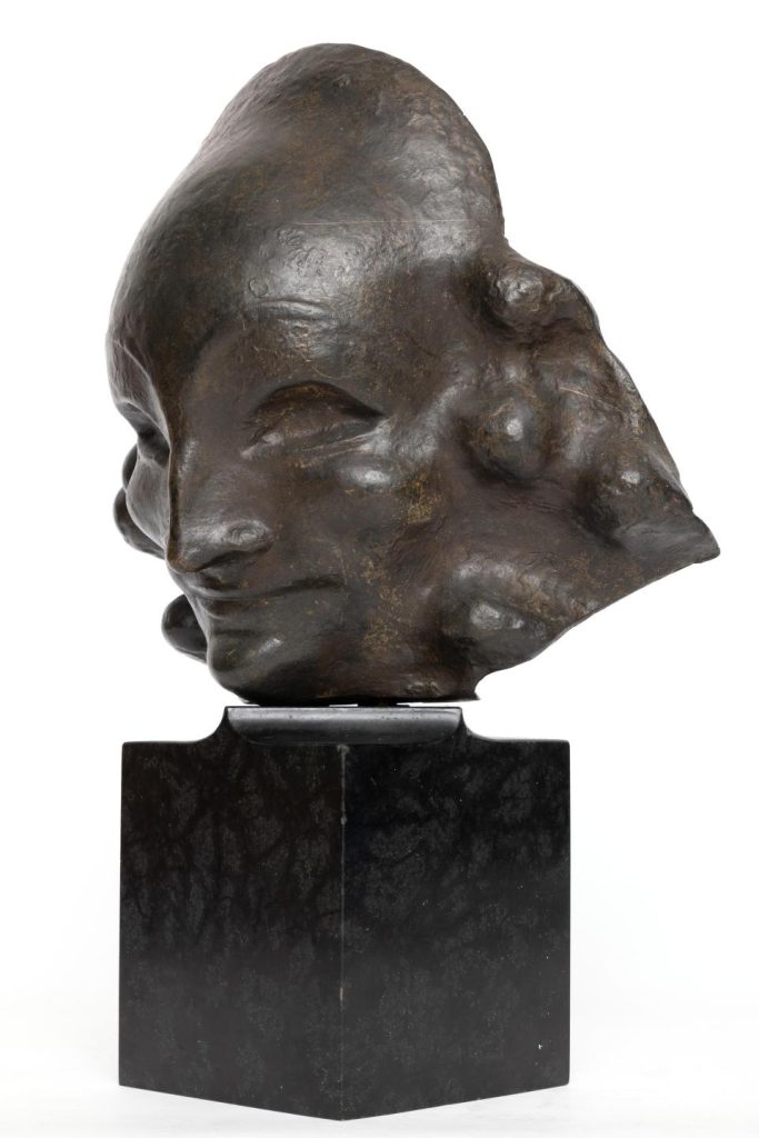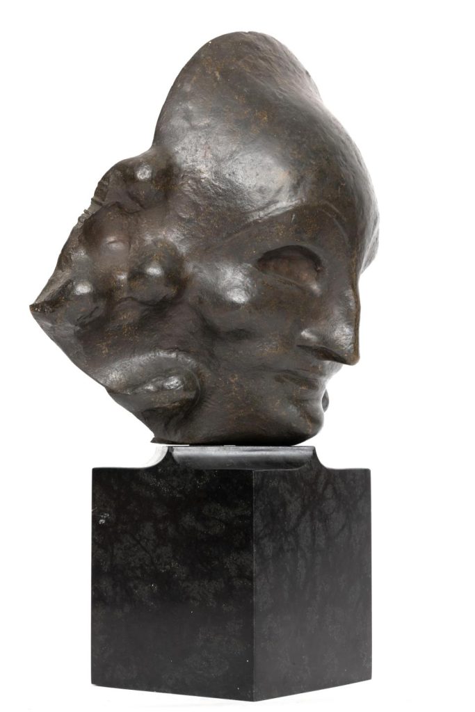 Het werk wat wij aanbieden, met lotnummer 2565, is een bruin gepatineerd bronzen sculptuur, een ‘Masker’. Gemaakt in de vroege jaren ’20, is het een perfect voorbeeld van de zojuist benoemde intense expressiviteit.
